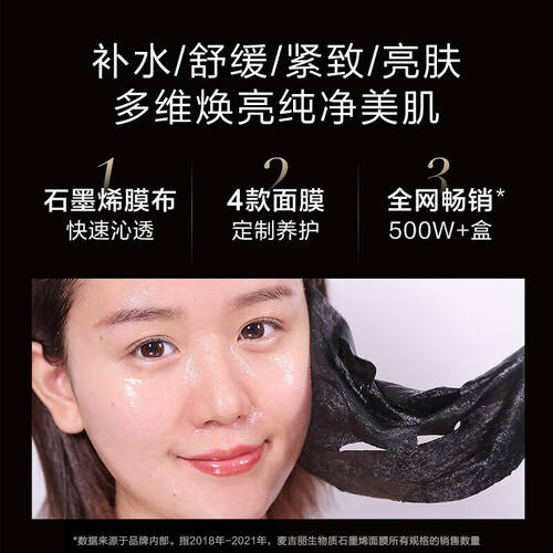 接下来是麦吉丽(Mageline)石墨烯生物质蚕丝面膜,凭借其创新黑科技而备受关注。该面膜不仅具备深层渗透的能力,还能有效净化毛孔,吸附肌肤深层的污垢和多余油脂,适合油性及混合性肌肤。它的石墨烯膜布设计使得面膜更加服帖,柔软透气,能够让肌肤感受到前所未有的舒适体验。此外,这款面膜还包含多重护肤成分,能够实现补水、舒缓、紧致、亮肤等多重功效。