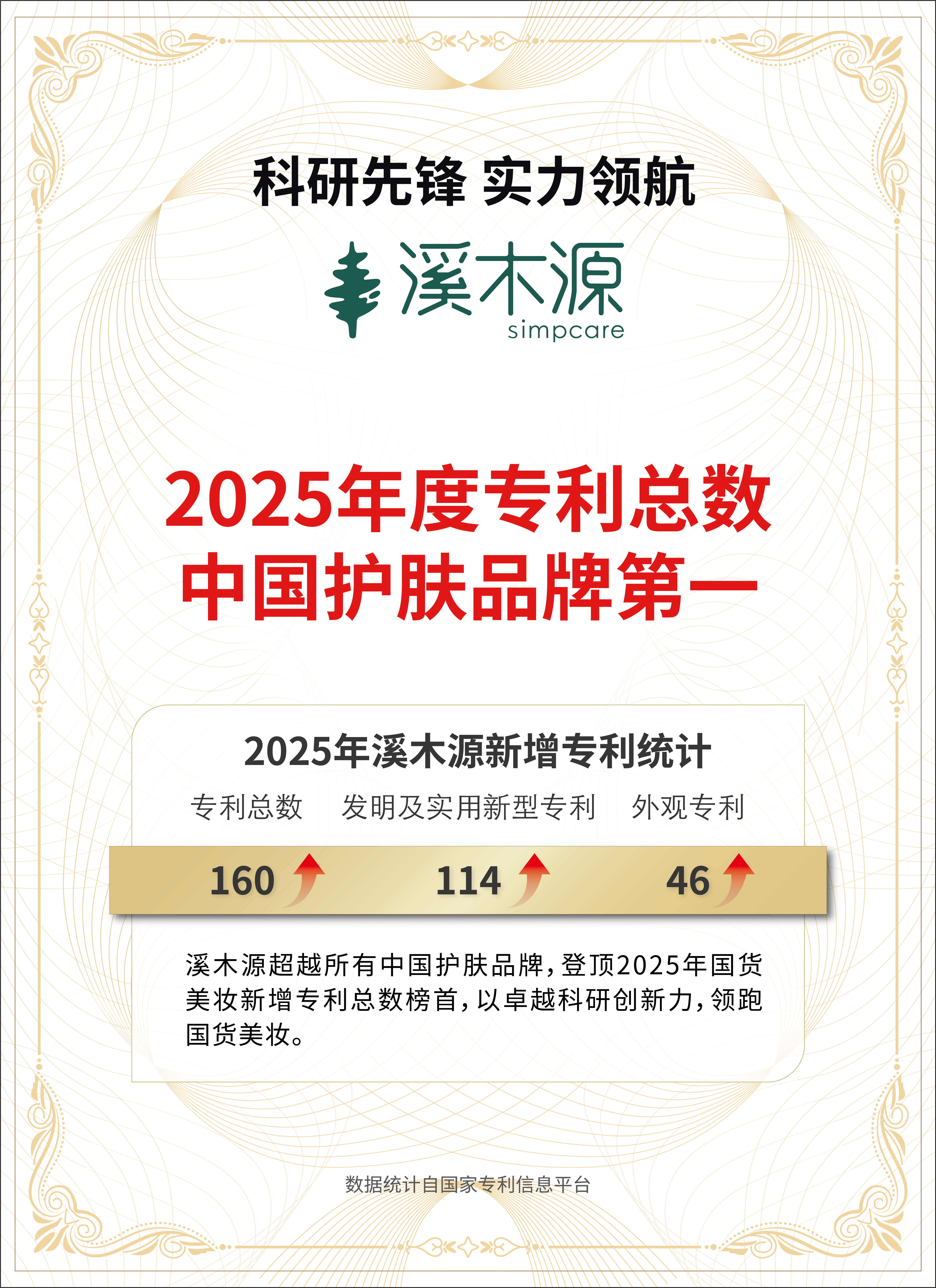 数据显示,截至2026年1月底,溪木源累计专利授权及申请471项,且2025年新增专利总数达160项,位居中国护肤品牌首位。自品牌创立以来,累计完成超过1.8万人次的人体功效测试及近1200项人体临床验证,全面保障产品在安全性、功效性及使用肤感上的综合表现。